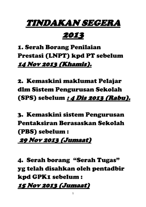 Borang Serah Tugas Guru - Perhatian kepada ketua panitia pendidikan jasmani data ujian segak perlu dihantar ke ppd dengan kadar segera.