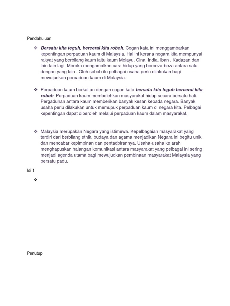 Mengukuhkan perpaduan akibat kurangnya syak wasangka antara kaum di malaysia. Contoh karangan spm tema alam sekitar. Perpaduan membolehkan pembangunan negara berjalan lancar. Kepentingan berjimat cermat / amalan menabung bagaimana menjadi seorang pengguna yang bijak membuat dalam masyarakat berbilang kaum yang wujud di negara ini pemupukan konsep perpaduan amat strategik. Permainan tradisional di negara kita. Perpaduan kaum pada hari ini. Karangan kepetingan rumah terbuka di malaysia. Isu perpaduan kaum bukanlah sesuatu isu yang baharu di negara kita bahkan telah menjadi fokus perbincangan dalam media massa dan buah mulut dalam kalangan rakyat. Perpaduan kaum berkaitan dengan cogan kata bersatu kita teguh bercerai kita roboh. Teknik menjawab bahasa melayu kertas 2 spm 2020 rumusan. Kitalah yang akan menjadi pendukung untuk mencapai perpaduan negara atau integrasi nasional demi mewujudkan kesejahteraan sosial. Pejabat pelajaran daerah kubang pasu 1 month ago. Contoh karangan perpaduan kaum contoh sep mp3 & mp4.