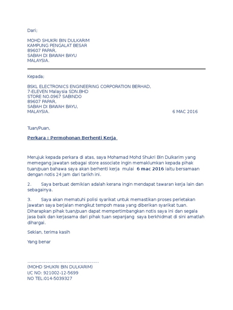 Syarat Notis Berhenti Kerja 24 Jam / Contoh surat perletakan jawatan (24 jam, 2 minggu, sebulan).. @snirdina datang office tadi, tengok member sebelah. Namun, letakkan tarikh anda ingin berhenti kerja sebulan dari sekarang. Sy brfikir,ada baiknya jika sy beri notis 24jam shj,sbb sy pun masih dlm tempoh latihan kan. Tips kerja cara 39berhenti kerja39 eng subtitle. Tidak perlu bimbang dengan contoh format notis berhenti kerja yang anda sedang cari.