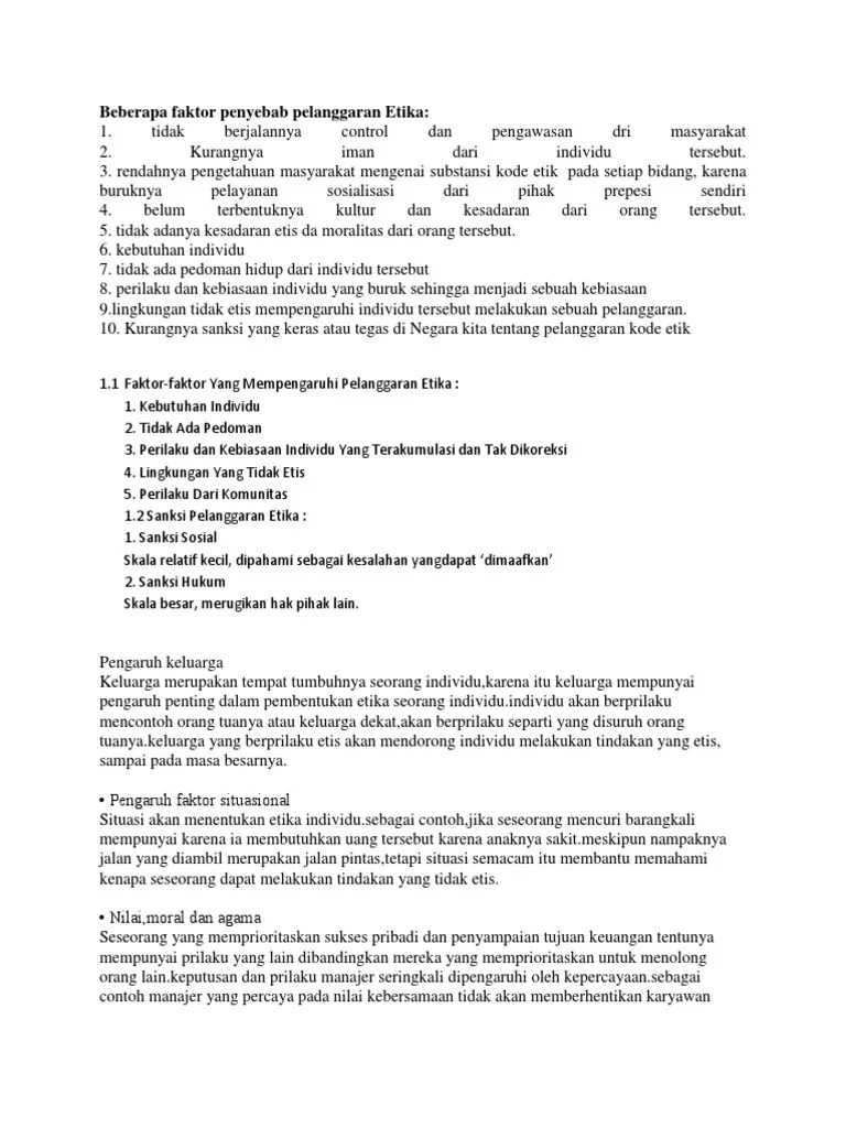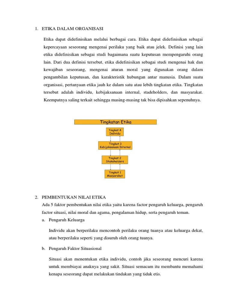 Ini bermakna bahawa walaupun apa yang membentuk tingkah laku beretika adalah di mata orang lain, ia biasanya mematuhi norma sosial umumnya boleh diterima. Faktor keadaan sekeliling persekitaran bermaksud keadaan atau situasi tempat sekeliling seseorang individu itu menetap, belajar atau bekerja. Pengaruh persekitaran di tempat kerja. Perilaku dari komunitas 1.2 sanksi pelanggaran etika : Etika adalah relatif, ia tidak mutlak. Pengertian dari etika, sampai saat ini belum memiliki definisi yang jelas. Dengan saling memahami sikap individu maka organisasi dapat berjalan dengan baik. Filsafat dalam arti luas adalah suatu usaha sistematis untuk memahami pengalaman manusia secara pribadi dan kolektif. Moral dengan tingkah laku etika 76 2 6 1 2 faktor faktor individu dan demografi lain 80 2 6 2 hubungan antara faktor situasi dengan. Dalam erti kata yang lain, pembentukan etika individu akan terbantut sekiranya komuniti memberikan persepsi negatif. Cabaran utama sektor awam masa kini dalam meningkatkan integriti dalam diri serta etika dalam pekerjaan. Orientasi etis ini diperlukan dalam mengabil sikap yang wajar <la.lam suasana pluralisme. Faktor politik yang mempengaruhi trend eksport malaysia stpm faktor perkembangan perusahaan getah di negeri kita example of elemental cost analysis malaysia faktor guna tanah perniagaan faktor pertanian kelapa sawit faktor mempengaruhi kegiatan ekonomi kerajaan agraria faktor pembentukan etika individu faktor pembentukan negeri negeri melayu.