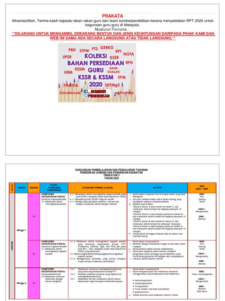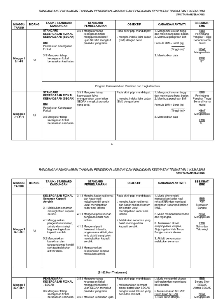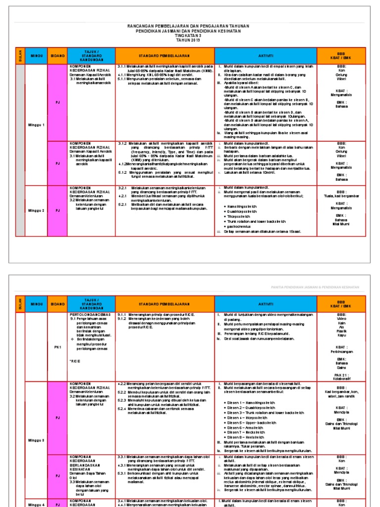 Pentaksiran tingkatan 3 (pt3) merupakan sebuah pentaksiran yang digunakan untuk menilai kefahaman pelajar tingkatan 3 di sekolah menengah. Rpt pjk tingkatan 3 rancangan tahunan pendidikan jasmani dan kesihatan tingkatan 3 *objektif *minggu *tunjang pembelajaran *kaedah/ aktiviti ( a=aras objektif) *rujuka *pelajara *unit pembelajaran *kbkk *hasil n teks n *spesifikasi. Published with reusable license by adylla ellyna. Rancangan pengajaran tahunan tingkatan 5 2021 kurikulum standard sekolah menengah, kongsikan bersama rakan. Rancangan pengajaran tahunan 2019full description.